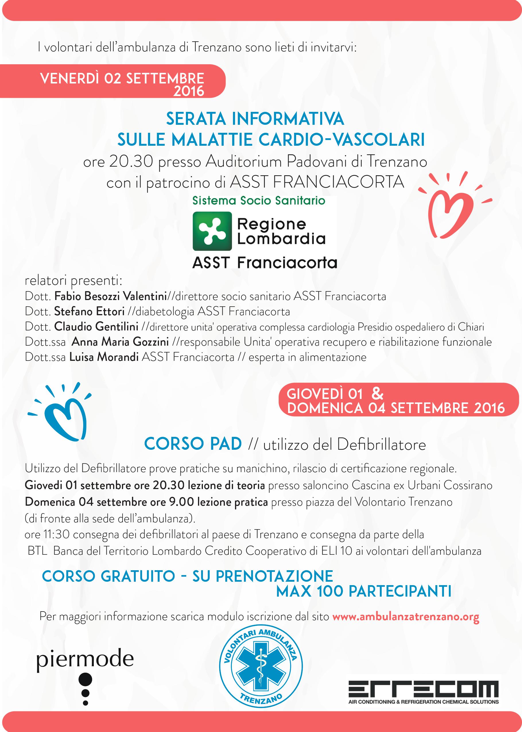 Domenica 04 settembre ore 9,00 - 12,00 lezione pratica presso piazza del Volontario Trenzano (di fronte alla sede dell’ambulanza).